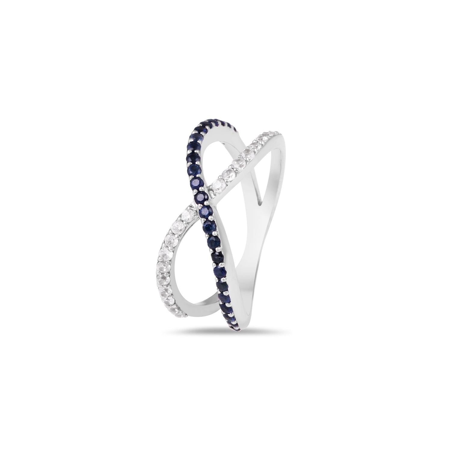 Embrace elegance with our X ring featuring round brilliant cut diamonds and Blue Sapphire. This Fabulous ring will never fail to get you all the compliments!