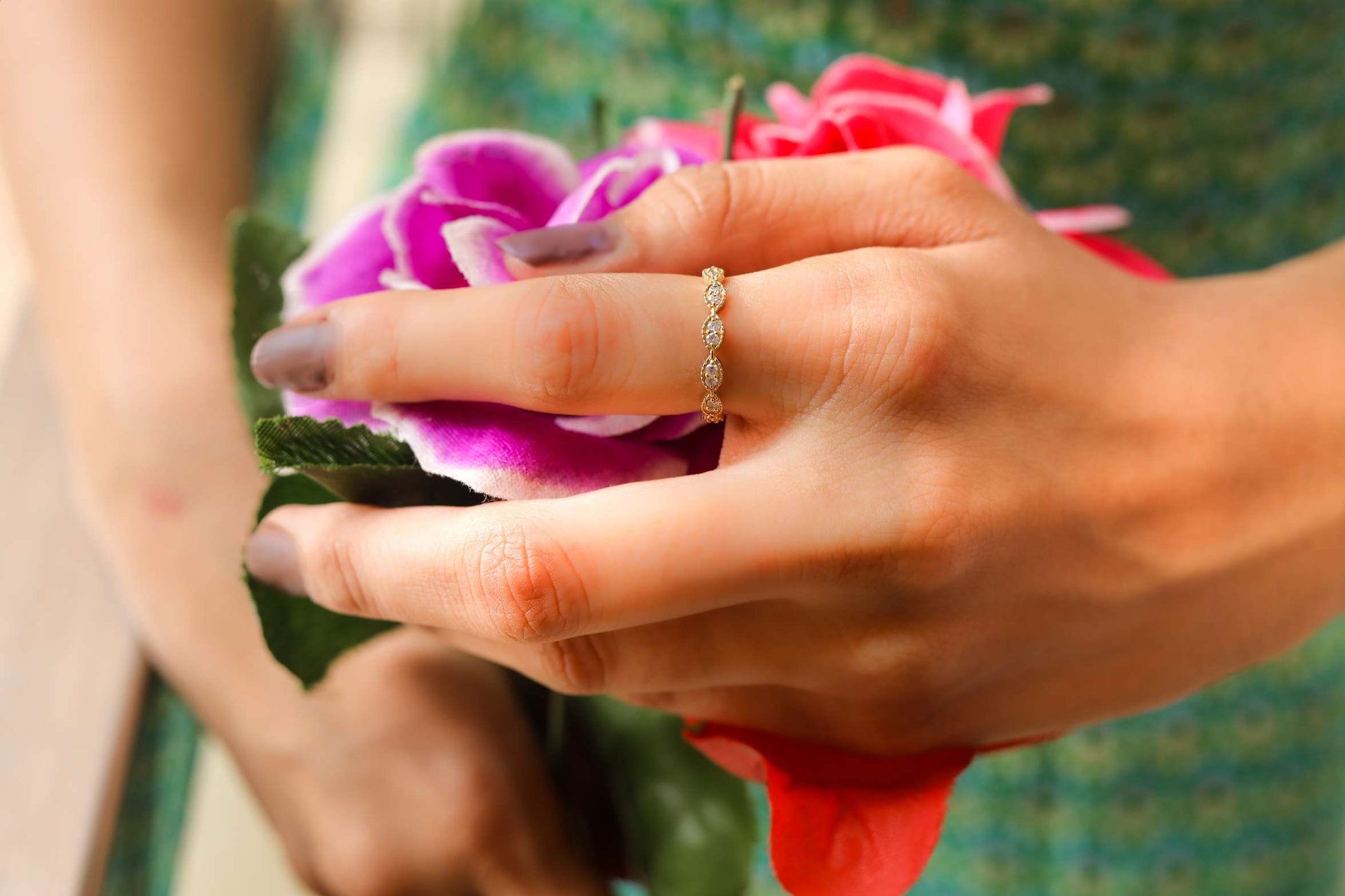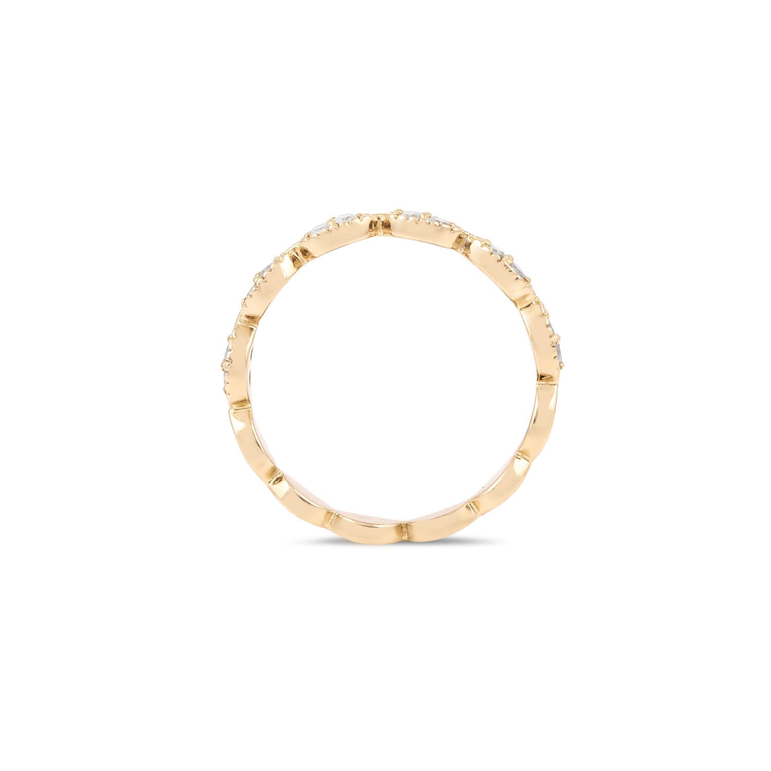 Round diamond set in a Marquise-shaped setting. A perfect minimalistic band.
