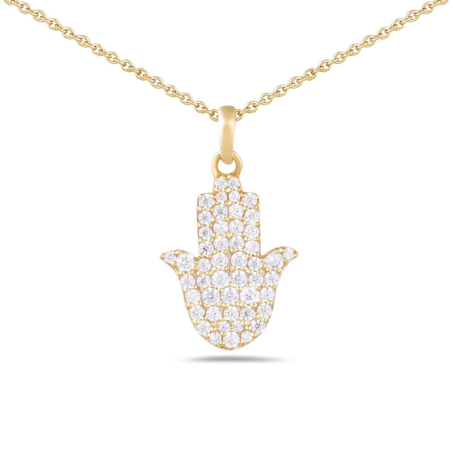 Splendidly charming pave setting hamsa pendant, famously known as the symbol of unity and protection. Ward off evil in style.