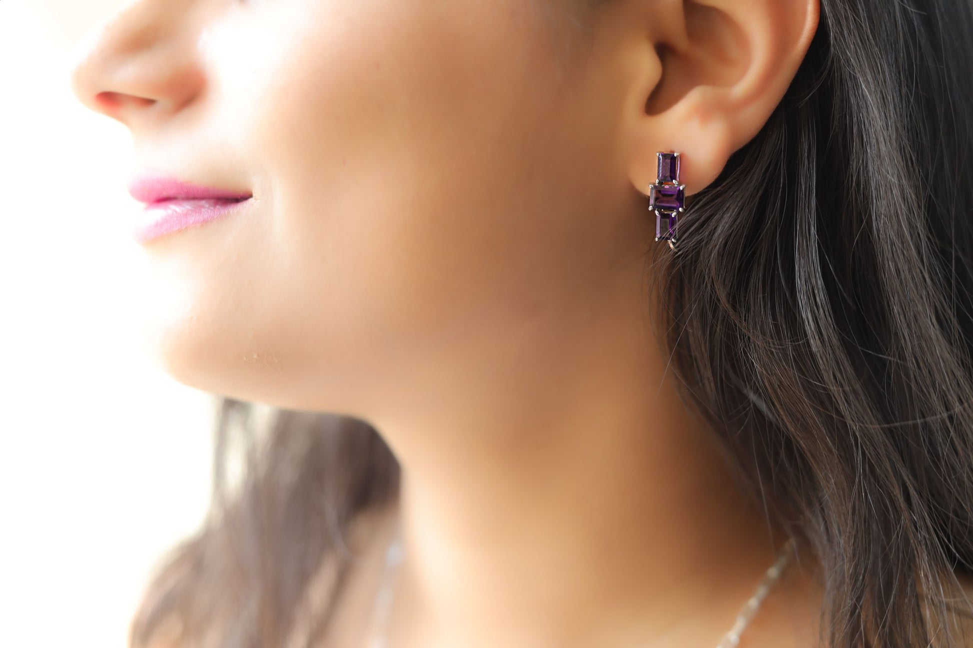 Three Stone Amethyst Earring